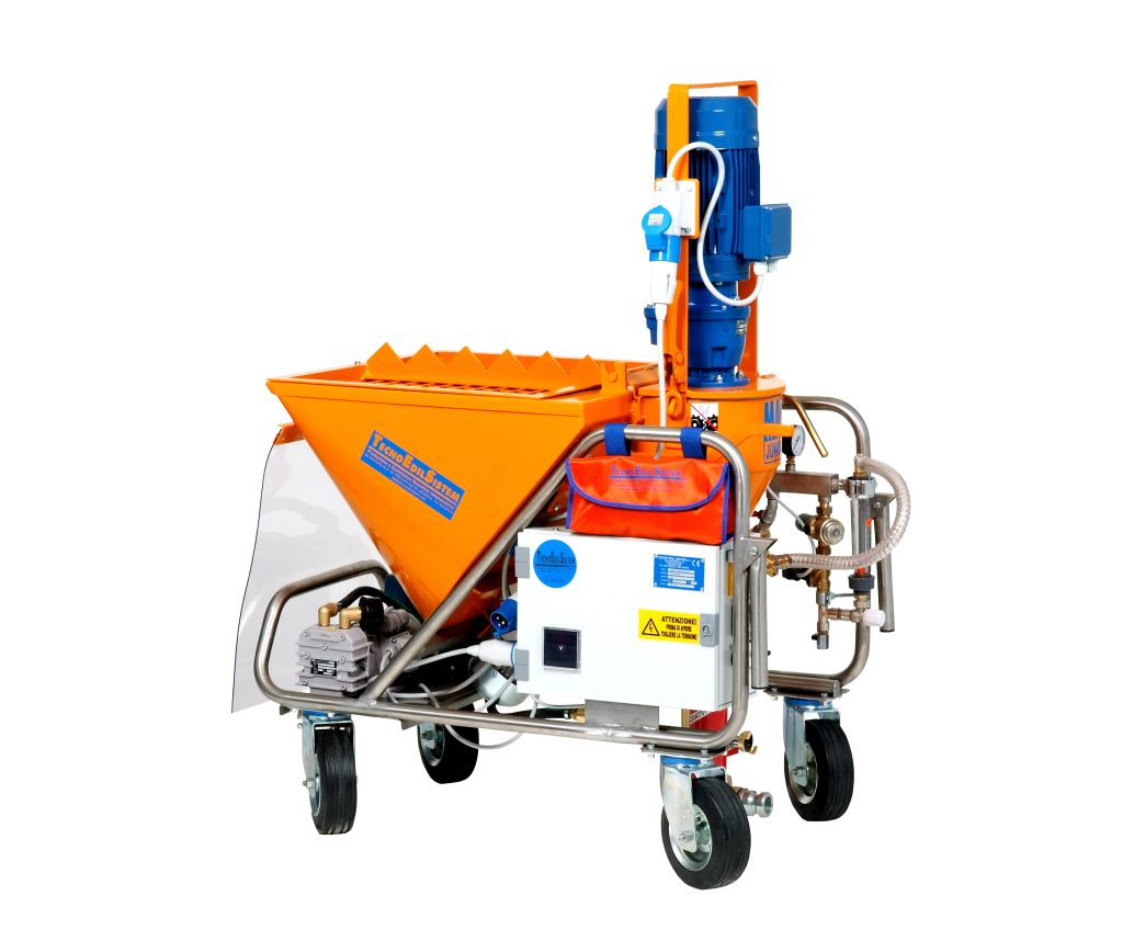 In aceasta categorie intra cele doua ramuri ale masinilor de tencuit si anume: masina de tencuit cu mortar preamestecat (premixat) si masina de tencuit cu mortar traditional (var, nisip si ciment sau nisip ciment)